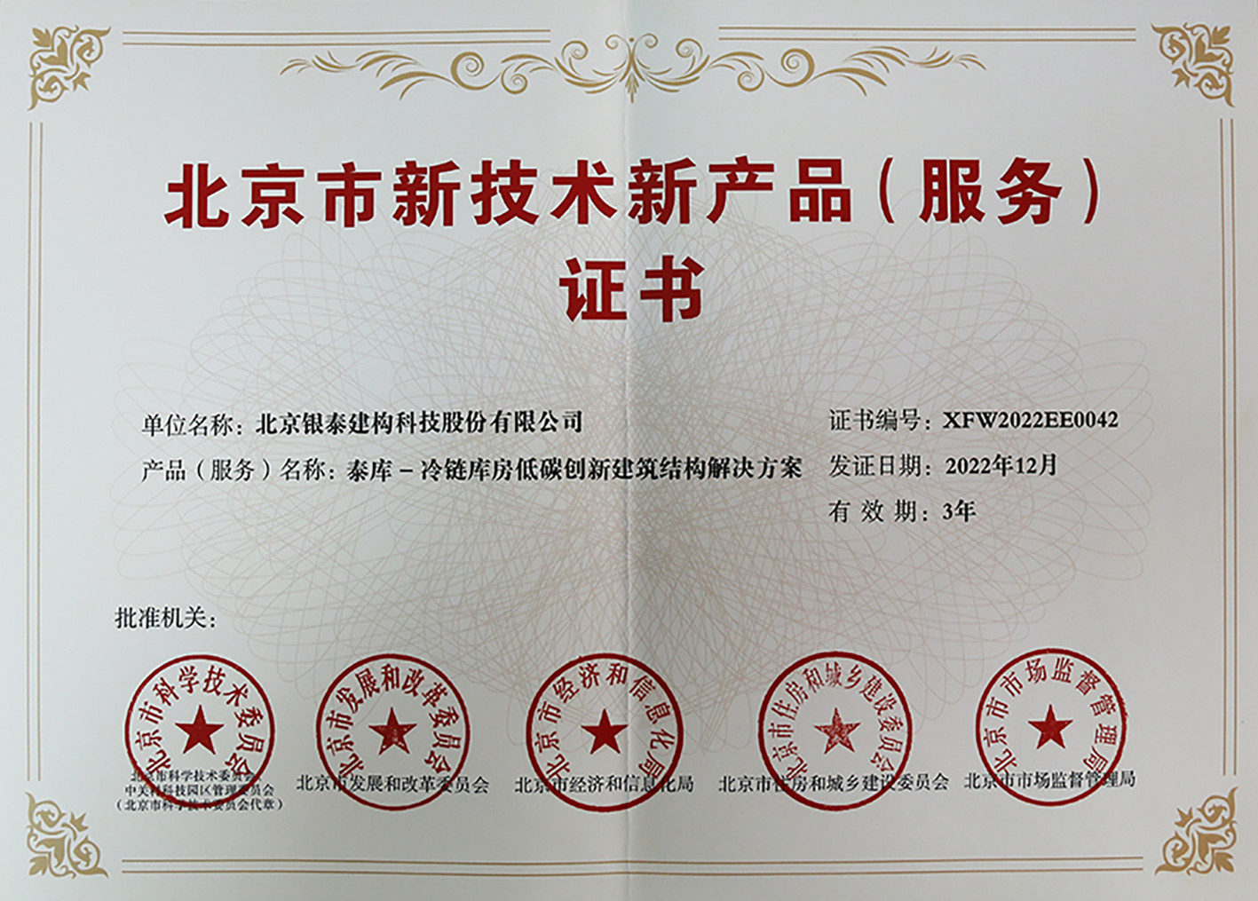 喜报!【银泰建构科技】“泰库”技术产品荣获北京市新技术新产品(服务)证书!
